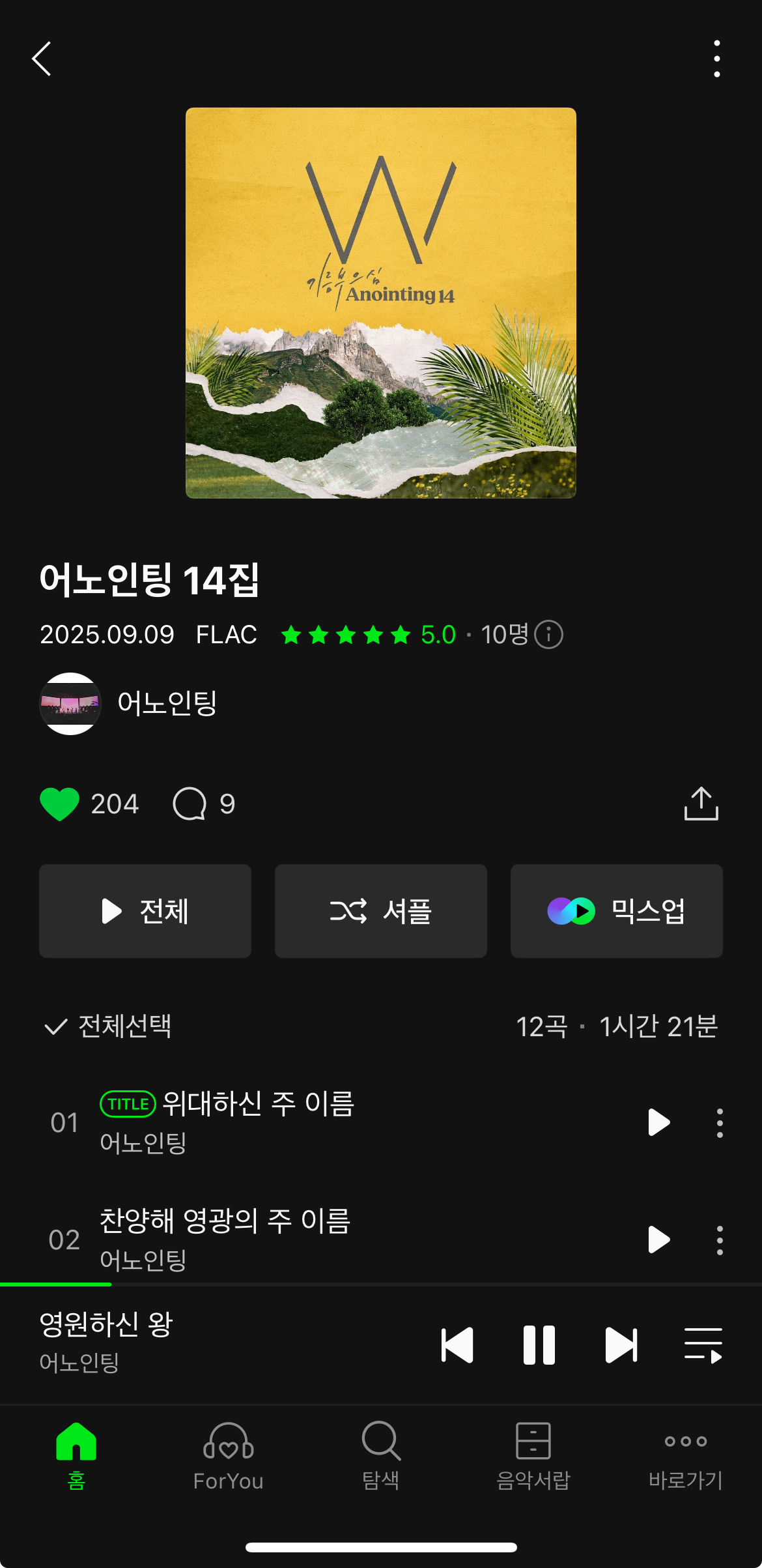 지난 주에 어노인팅 14집 들으면서 목소리가???