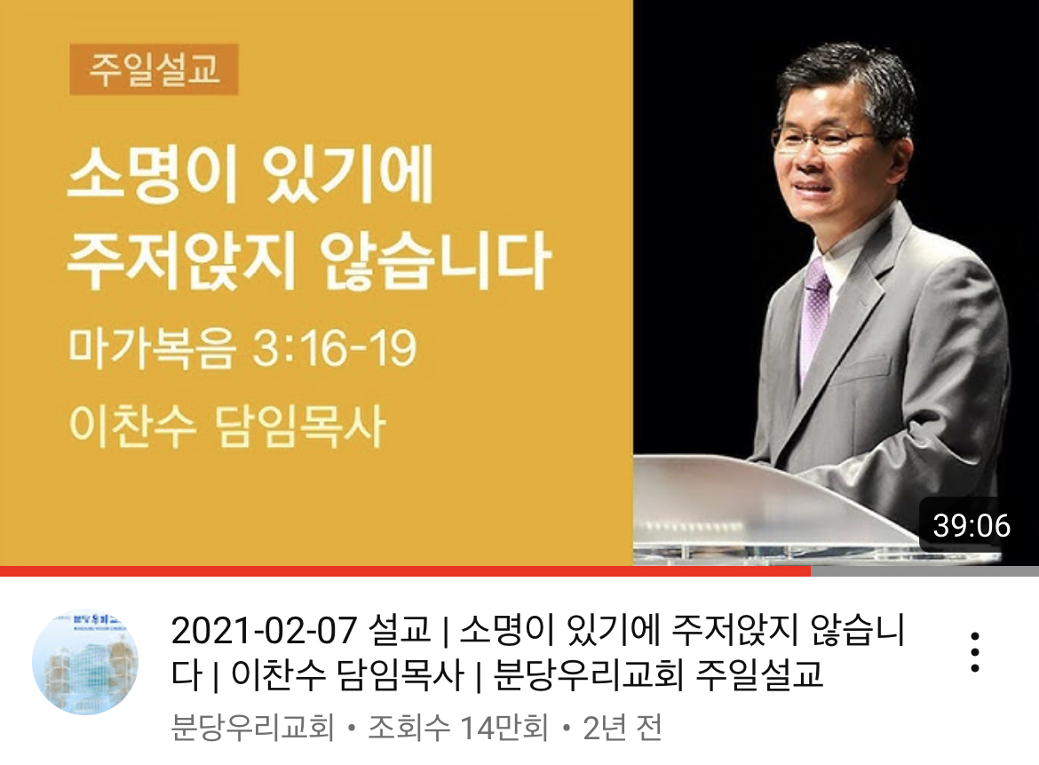 중 이찬수 목사님 설교중..